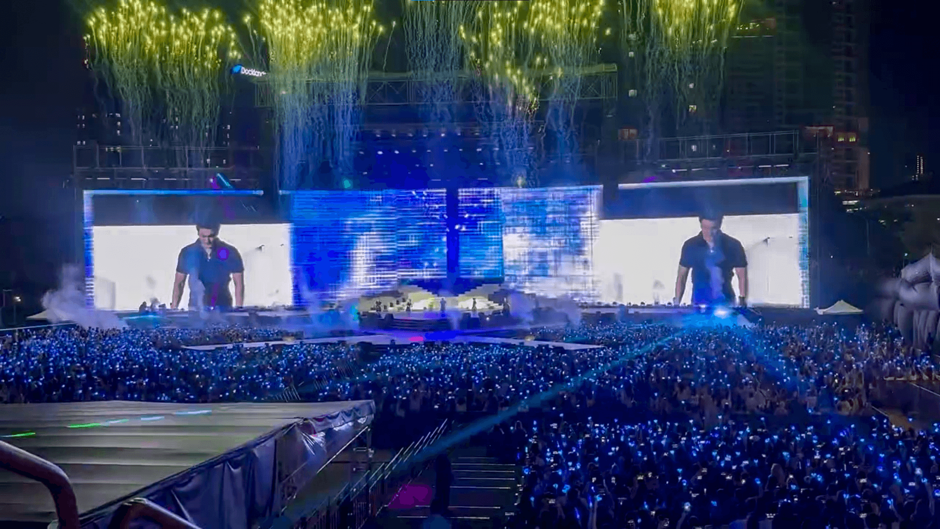 Tại khu vực hai cánh sân khấu, hệ thống P3 Outdoor LED Display được đặt đối xứng, hoạt động như hai màn hình hiển thị chính, giúp tái hiện hình ảnh nghệ sĩ rõ ràng cho khán giả ở mọi vị trí. Đây là khu vực đóng vai trò quan trọng trong việc truyền tải biểu cảm, năng lượng và các chi tiết hình ảnh mà mắt thường khó bắt kịp trong một sân khấu rộng lớn.